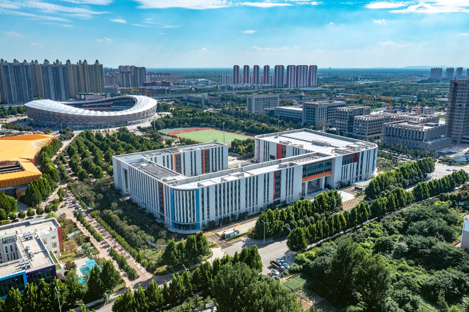 新体校建设项目,位于济宁市太白湖新区许庄街道,荷花路东侧,北湖西路南侧,济宁市体育中心院内。共4个单体楼,总建筑面积60424.4㎡。项目建成使用后,在职教师达到150人,在校学生800人,比赛228人,计划设置20个班。